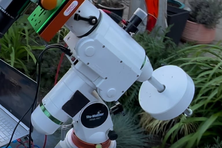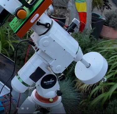 My main imaging telescope is the Skywatcher Esprit 120ED, this has a focal length of 840mm and is F7, I also have a flatner and a flatner/reducer, this takes the focal length down to 648mm and at F5.6.