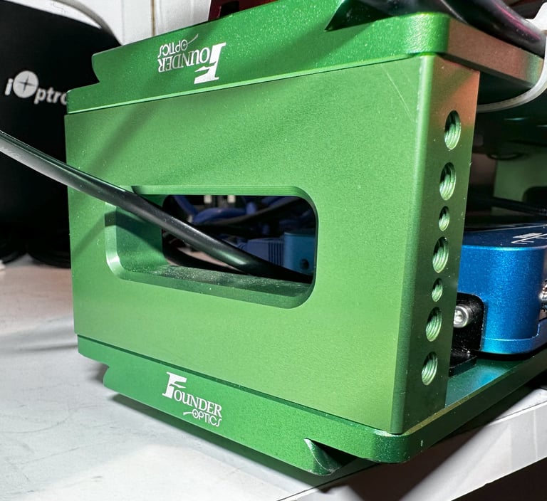 Riser blocks and Losmandy plates are useful accessories, the plates are by Founder Optics and the blocks are by Altair Astro