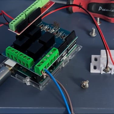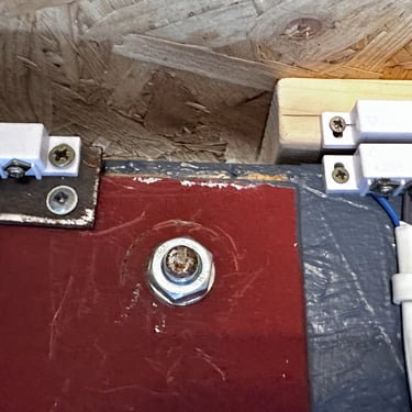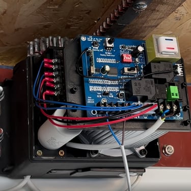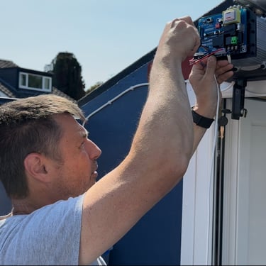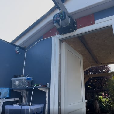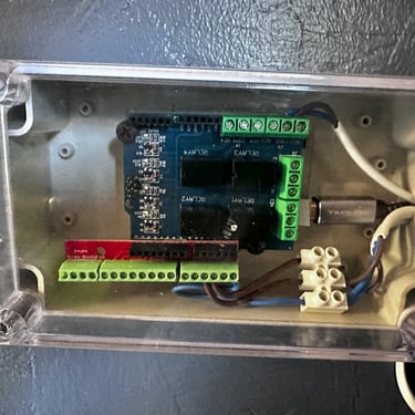 These photo's show the gate motor with the cover off, the arduino switch which helps to control the roof openning and closing, magnetic switches which determines the position of the roof as either open or closed, my electrical switch covers which keeps the moisture off, conduit for my internet cable and Glenn from Astrobloke, kindly helping me install the arduino switch.