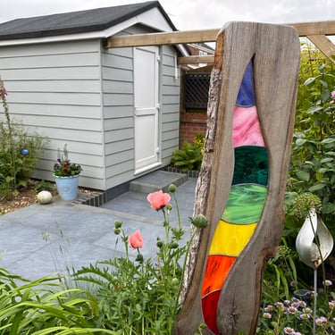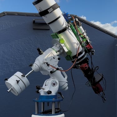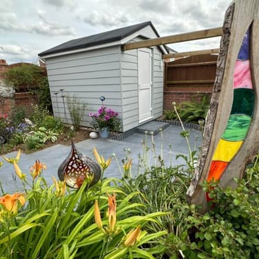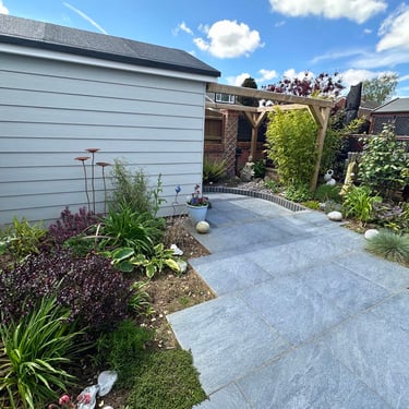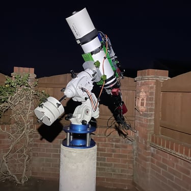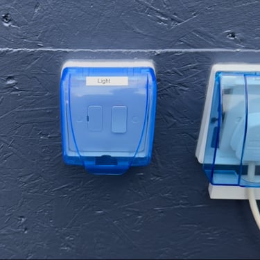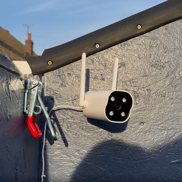 Here are some images of the garden finished and planted up. The patio is 20mm thick anthracite colour porcelain tiles, which compliments the colour of the observatory which is cladded with list mist coloured Hardie Plank cement boards. Internally, you can see the rubber seal that was used, on the sides of the observatory walls. Also, the wi-fi security camera, plastic switch covers and the catches used to lock down the roof in high winds. There are links to Amazon for a lot of these items in the previous page. Finally theres me and my grandson Corey, who featuers in some of my observatory build videos.